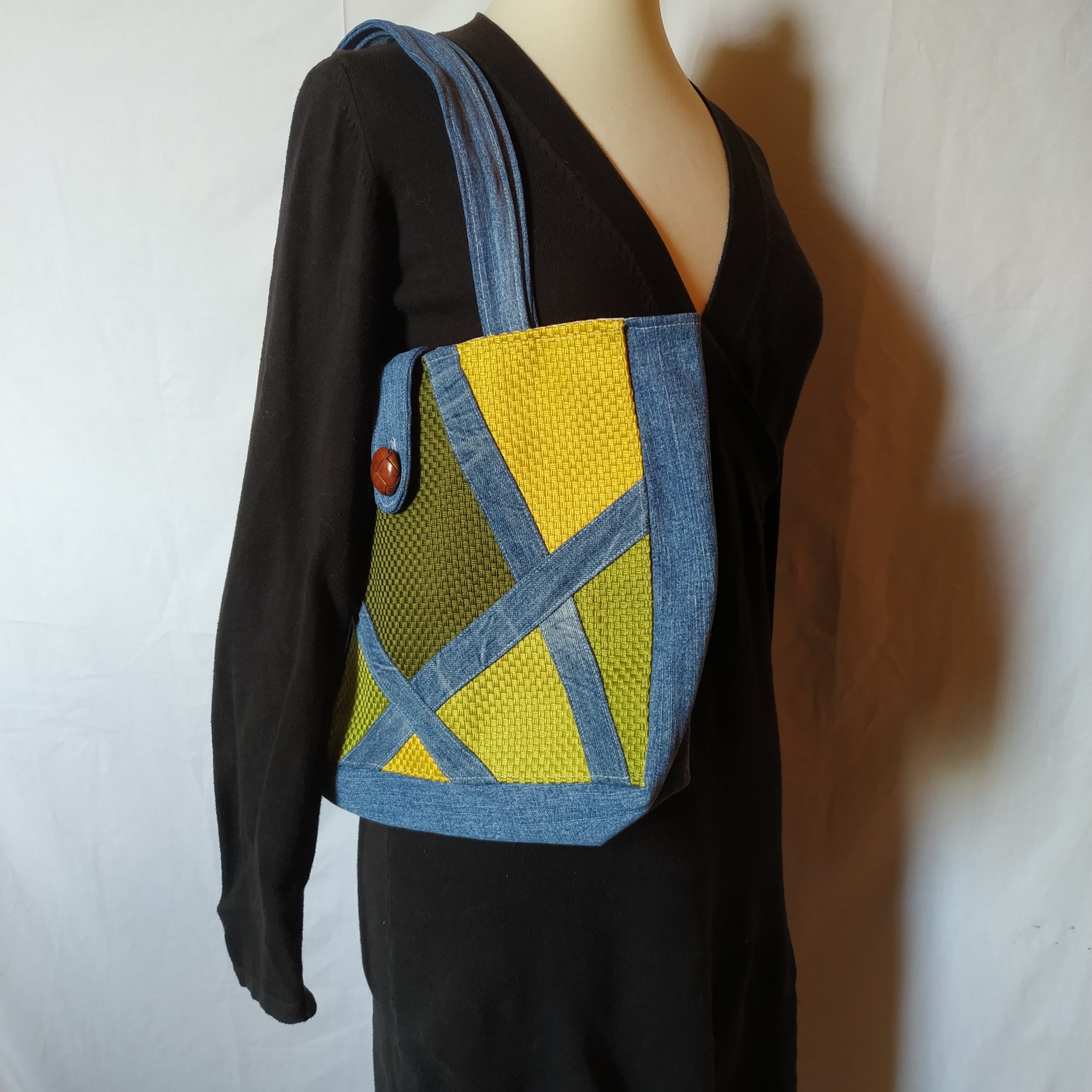 Elke schoudertas is met de hand gemaakt en uniek. Er is niet eens een bestaand patroon van, want ik bedenk gewoon wat bij de stof past die ik gevonden heb.