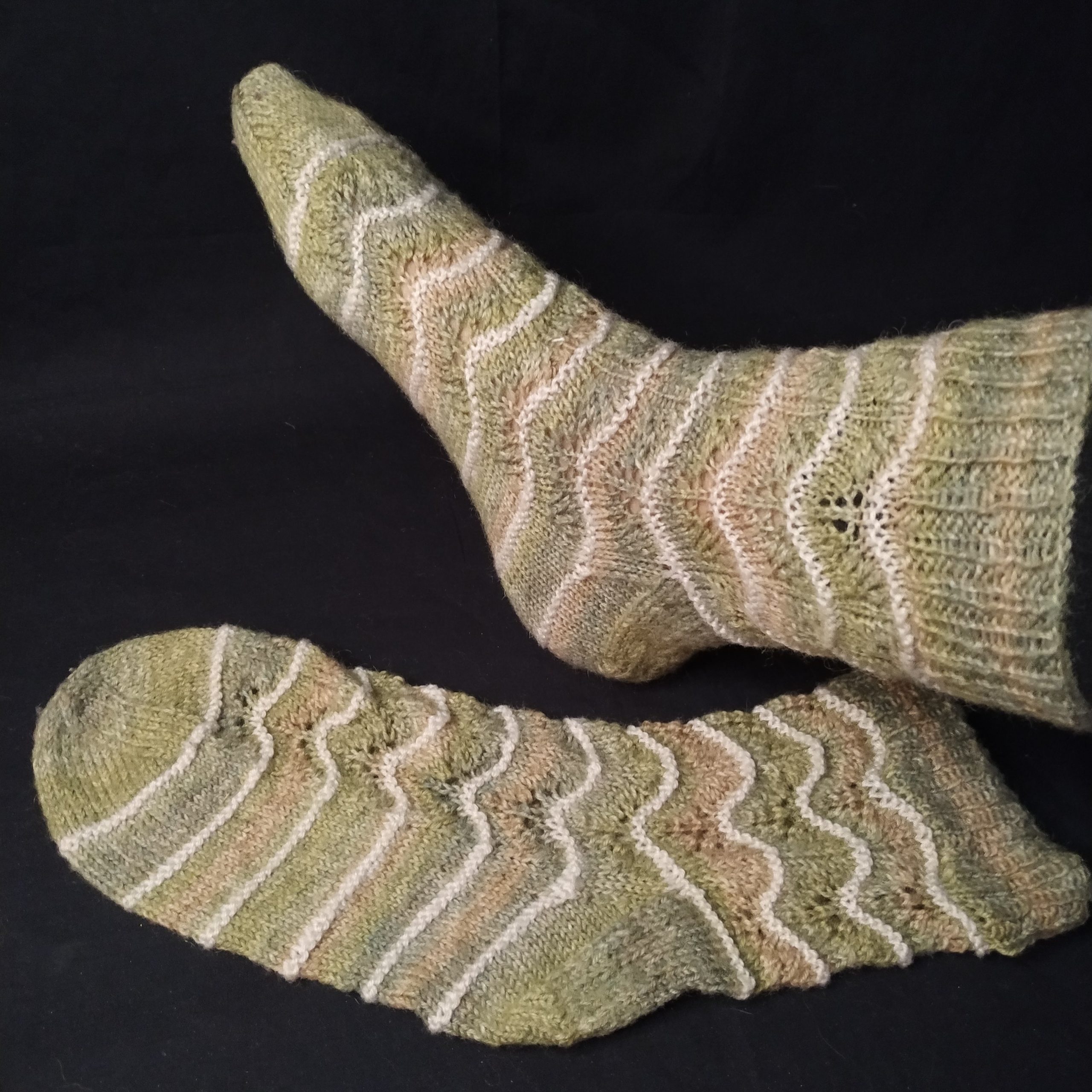 Deze lieve sokjes zijn gebreid in een heel erg leuk patroontje. Door te meerderen en minderen worden er vanzelf golfjes gevormd. Niet alleen leuk om te zien, maar ook om te maken. Win-win dus.
